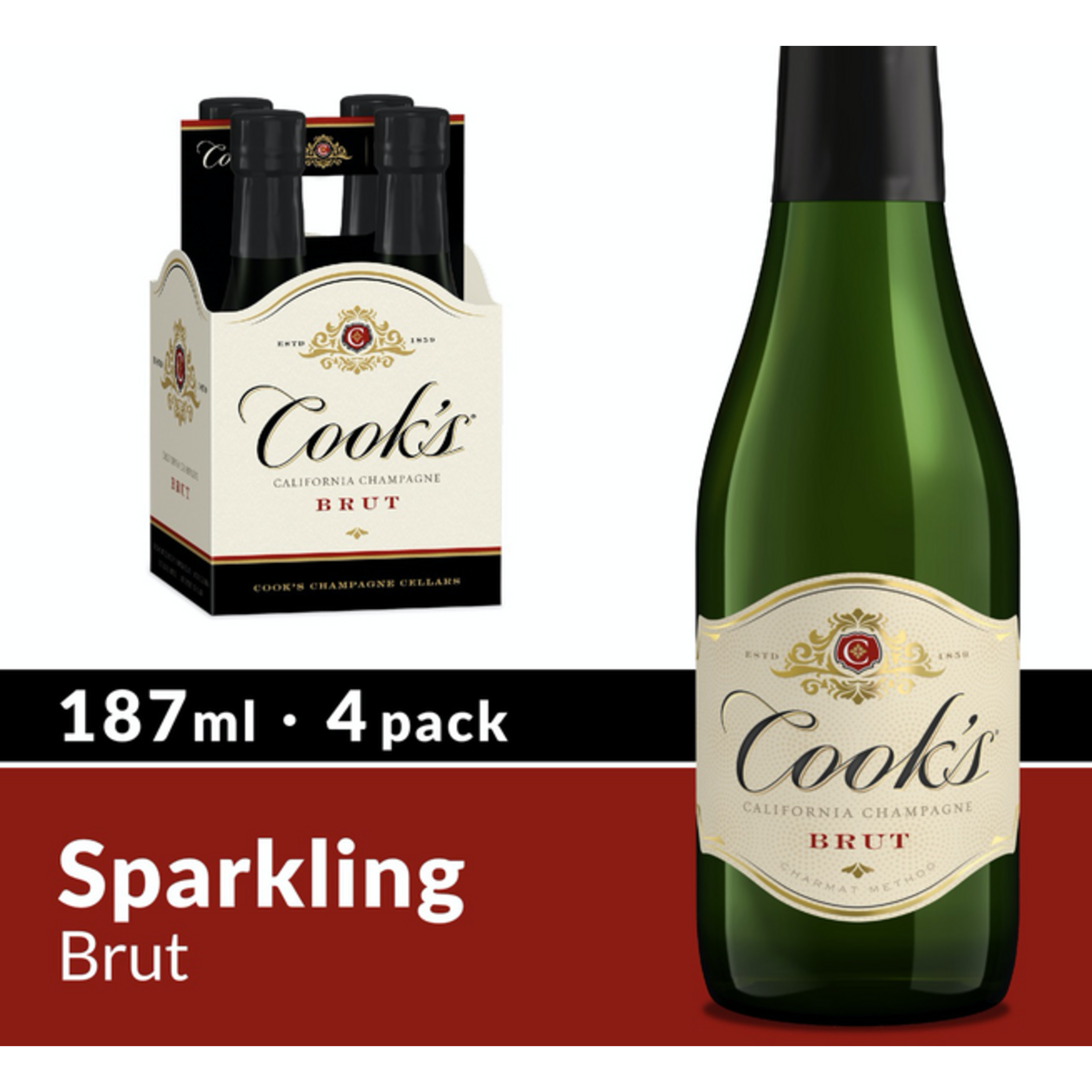 Cook S California Champagne Brut White Sparkling Wine 4 Pk 187 Ml Mini Bottles Walmart Com